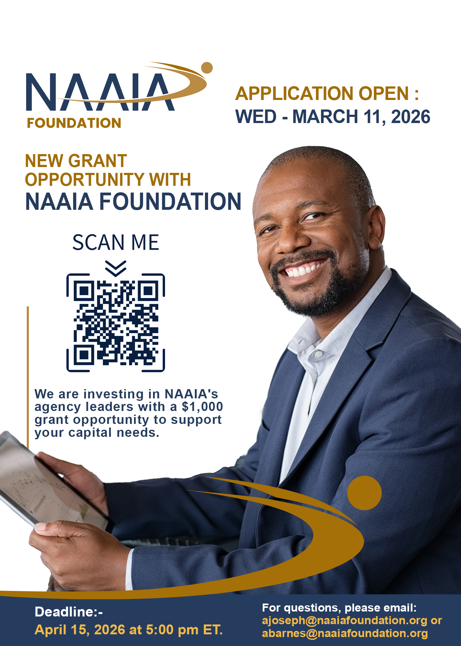 The Vision of the NAAIA Foundation is to invest in organizations, initiatives, and communities that enable community Diversity, Inclusion and Entrepreneurship in Insurance and Financial Services.